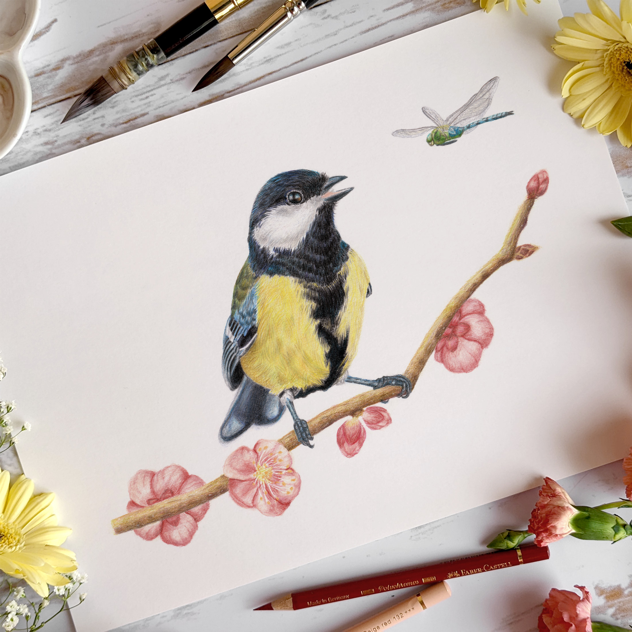 Curieuse et bavarde, la mésange charbonnière s’est liée d’amitié avec une jolie libellule anax empereur !